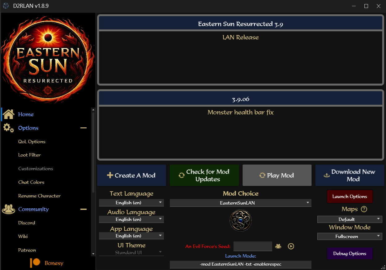 In order to play this mod with the best QoL, you have to download the D2RLAN. D2RLAN